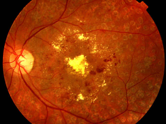• Vision floue : diminution de la vision centrale (la vision de loin et la capacité de lecture sont réduites).